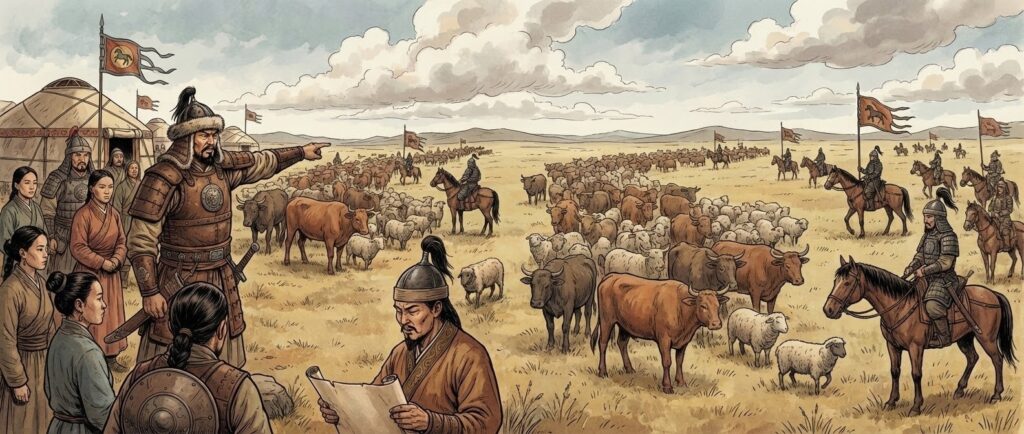 Een generaal van Genghis Khan verdeeld 4/5 van 350 veedieren. Hoeveel is dat?
