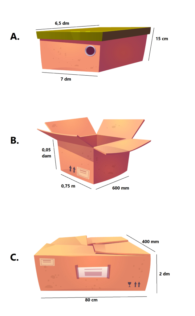 2D) Wat is de inhoud van doos B in dm?