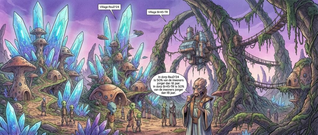 50% van dorp A is niet hetzelfde als 50% van dorp B. Je mag die percentages niet optellen, want ze horen niet bij hetzelfde totaal.